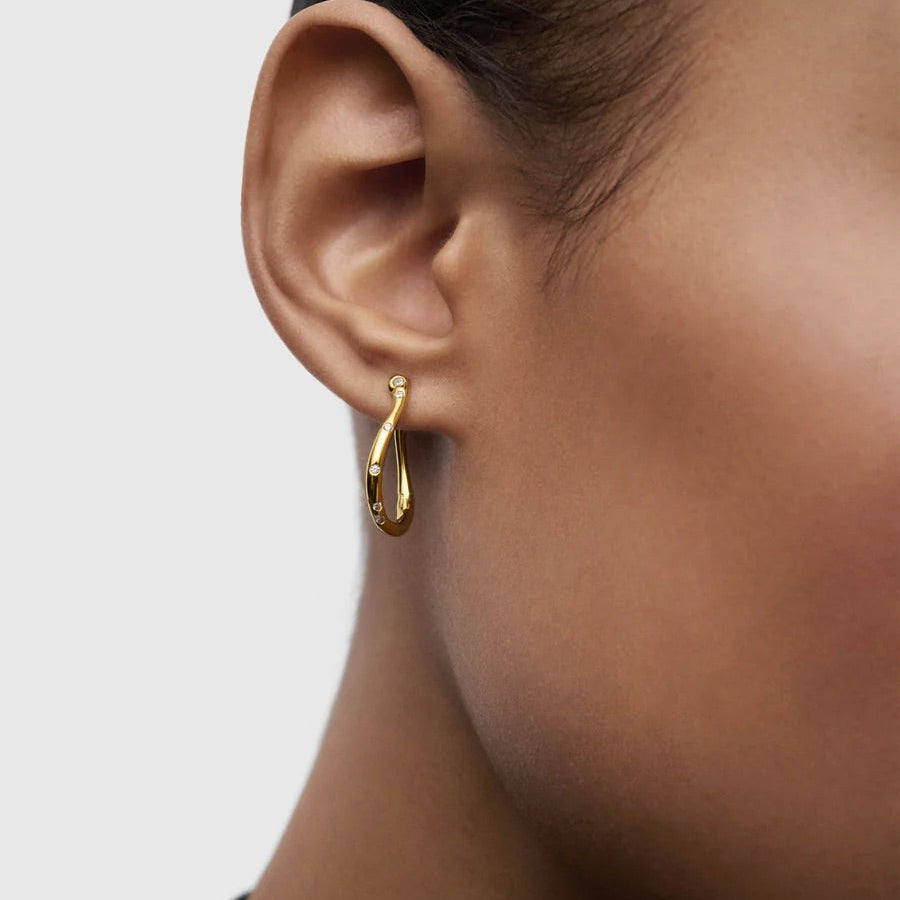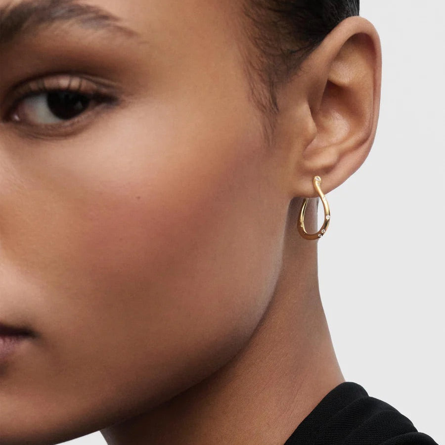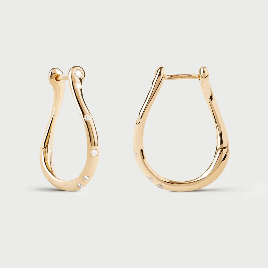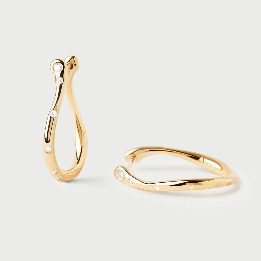 Delicate gold-plated hoops with a graceful wave design, enhanced by shimmering zirconia details. These mini earrings strike the perfect balance between understated elegance and refined sparkle, ideal for everyday wear or layered styling. The lightweight construction ensures all-day comfort, while the timeless silhouette complements both casual and formal occasions. A versatile essential from PDPAOLA's curated collection.