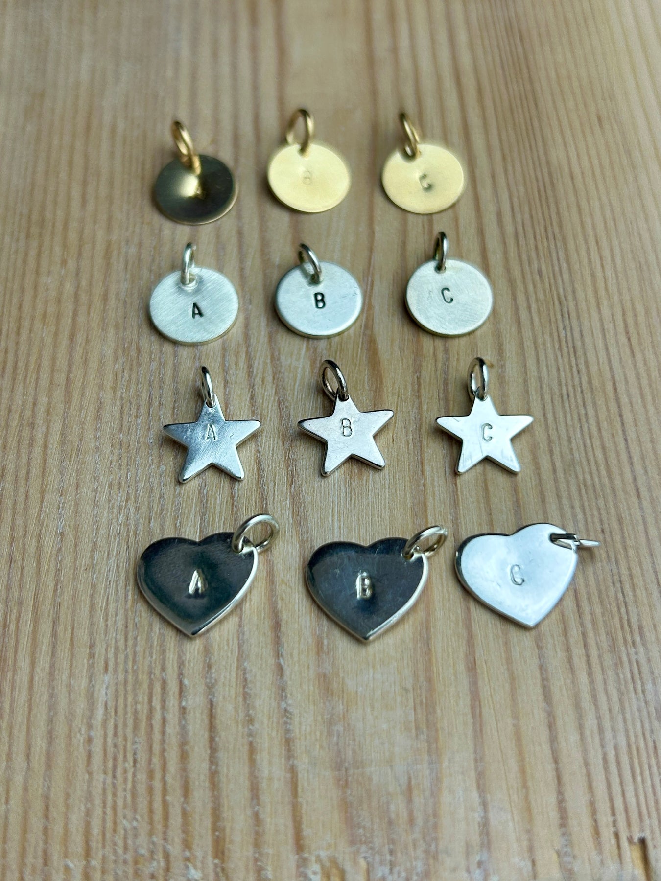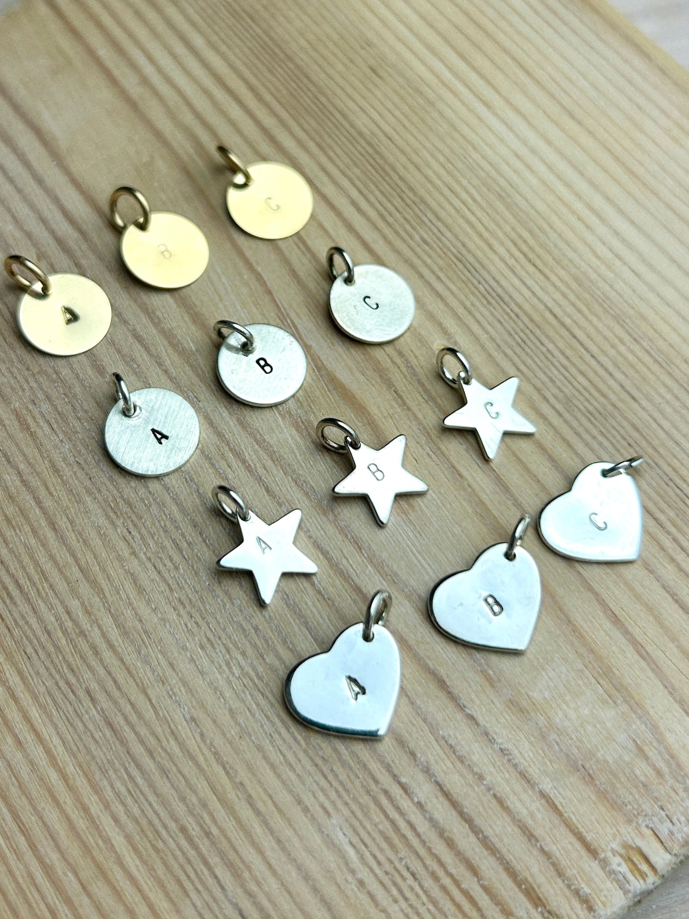 Made in sterling silver with a hand stamped capital letter and with a polished finish, these charms arrive in a gift box with a jump ring ready to thread up.
